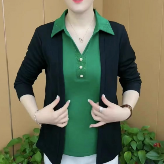 2-in-1 Sparkling Lapel Top for Middle-Aged Women