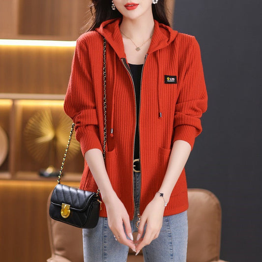 Knitted Jacket with Hooded Zipper Closure and Practical Pockets